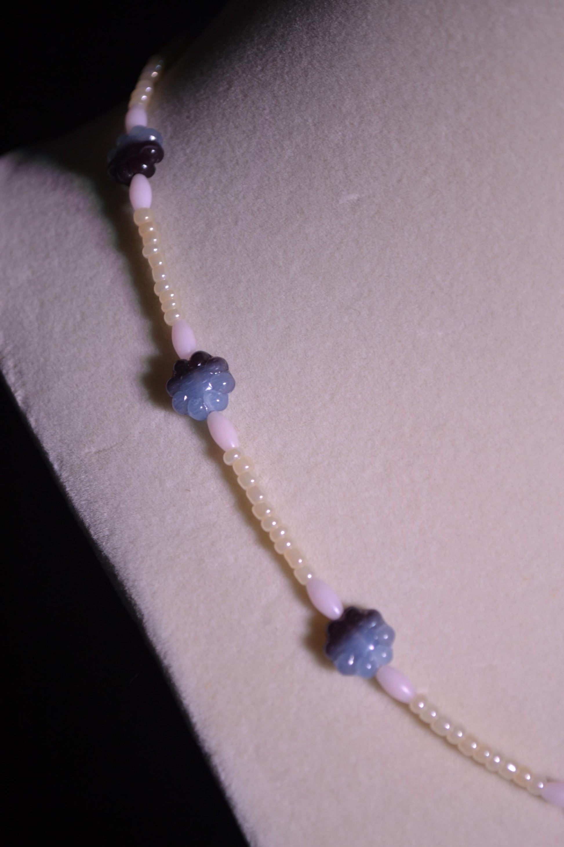Multicolor glass bead necklace. Cornflower