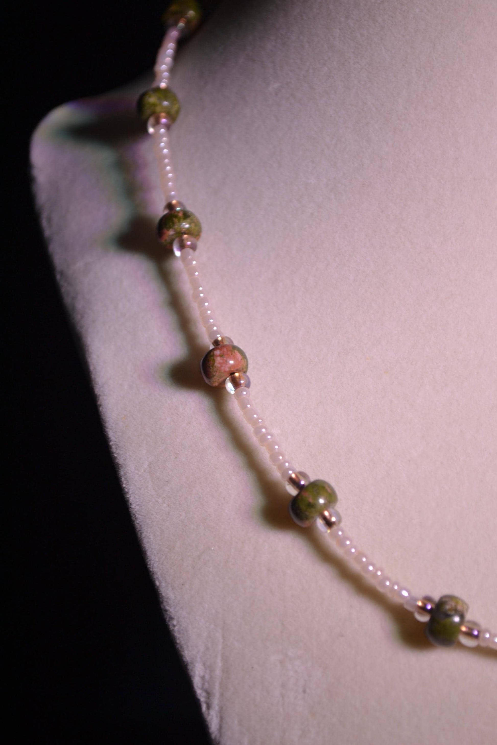 Hand beaded, 16.5 inches long, lobster clasp close