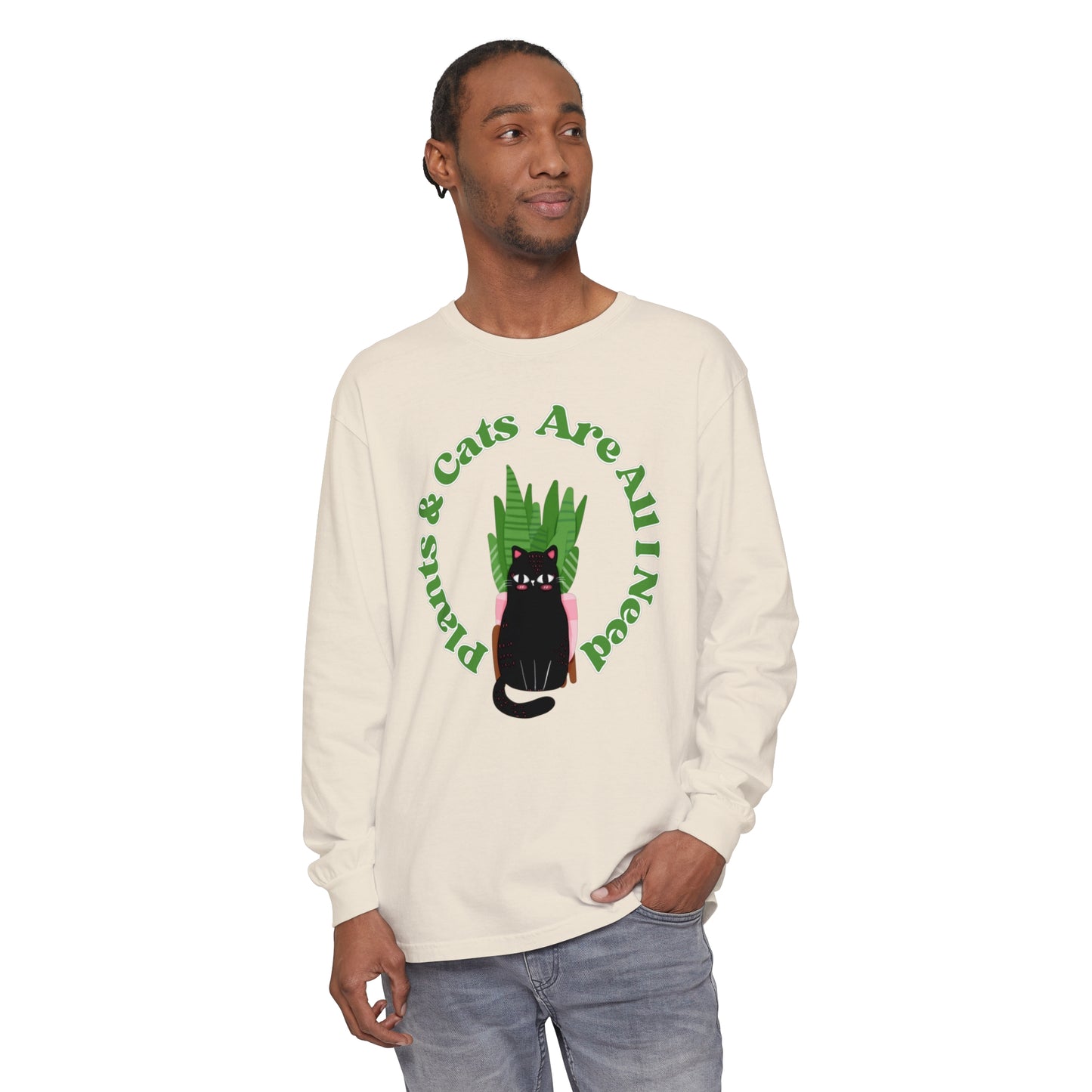 Plants & Cats Are All I Need Unisex Garment-dyed Long Sleeve
